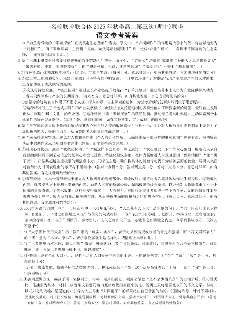 高二语文答案--湖南炎德英才名校联考联合体2025年秋季高二第三次(期中)联考