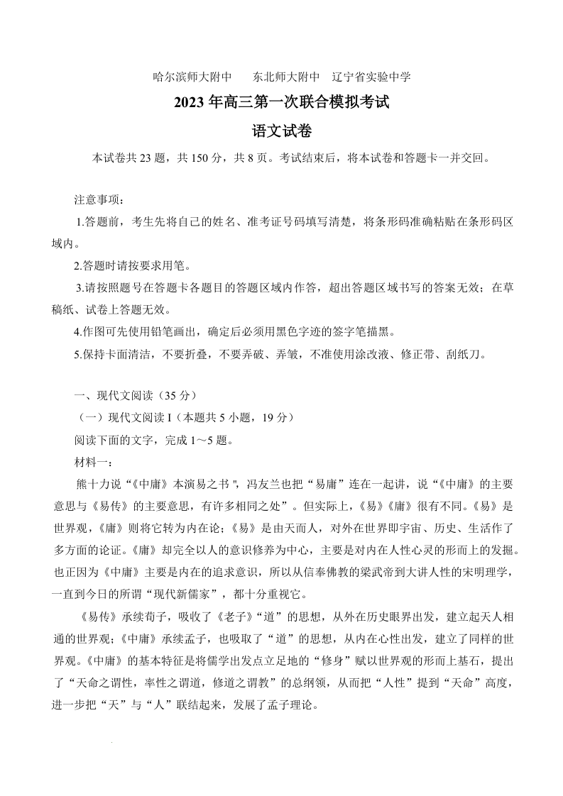高三语文+答案--东北三省三校高三第一次模拟考试试题(哈师大附中、东北师大附中、辽宁省实验中学)