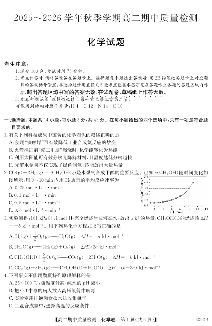 高二化学--安徽省华师联盟2025~2026学年秋季学期高二期中质量检测