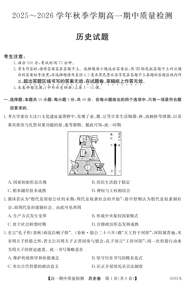 高一历史--安徽省华师联盟2025~2026学年秋季学期高一期中质量检测