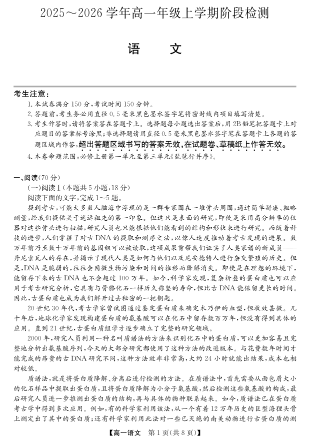 高一语文--安徽省江淮名校2025-2026学年高一上学期阶段联考