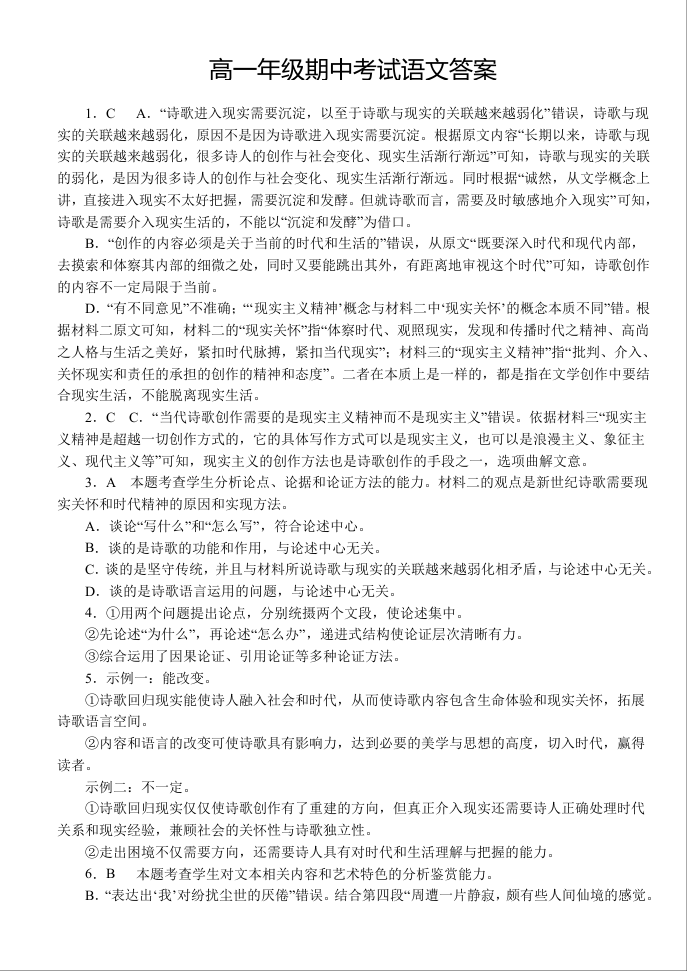 高一语文答案--湖北省荆州市沙市中学2025-2026学年高一上学期11月期中考试