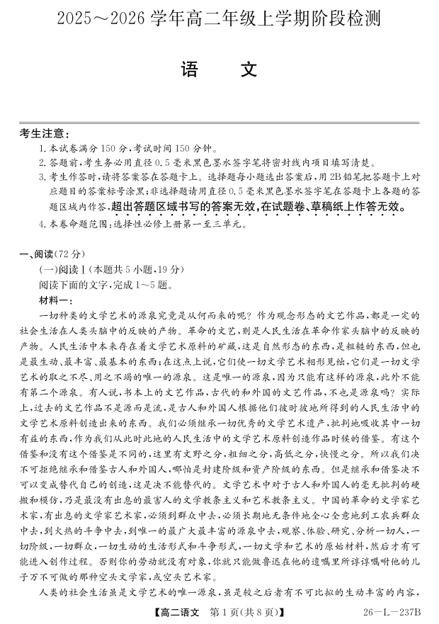高二语文--安徽省江淮名校2025-2026学年高二上学期阶段联考
