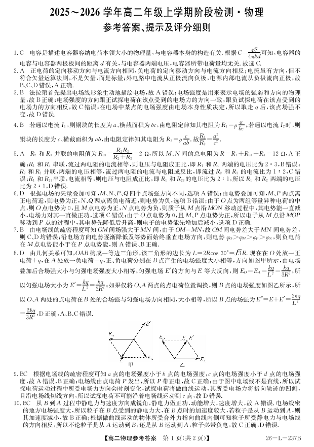 高二物理答案--安徽省江淮名校2025-2026学年高二上学期阶段联考