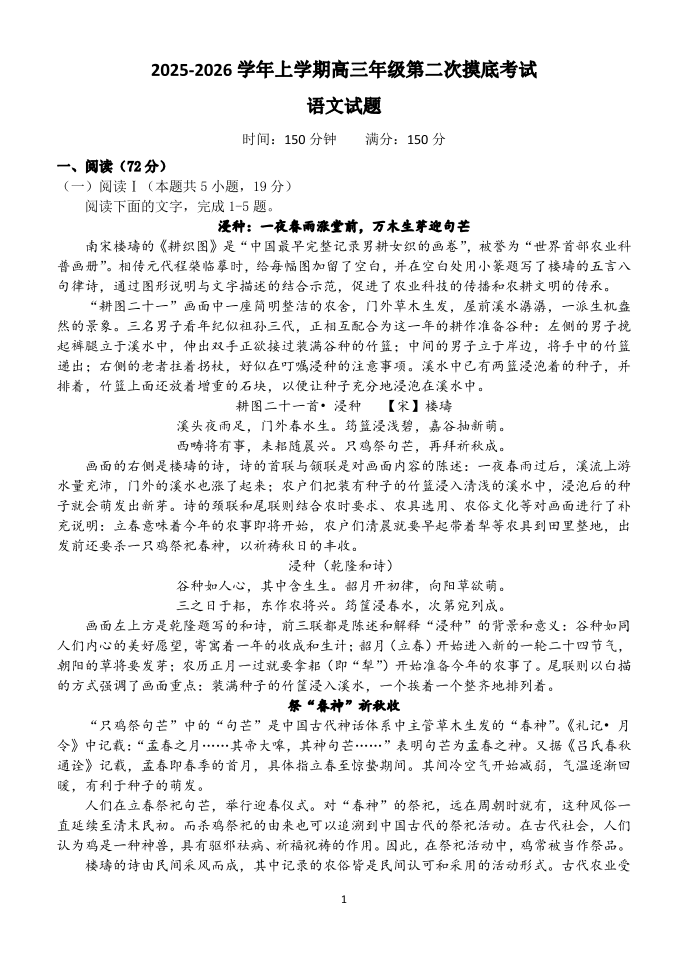 高三语文--吉林省长春市东北师大附中2026届高三第二次摸底考试