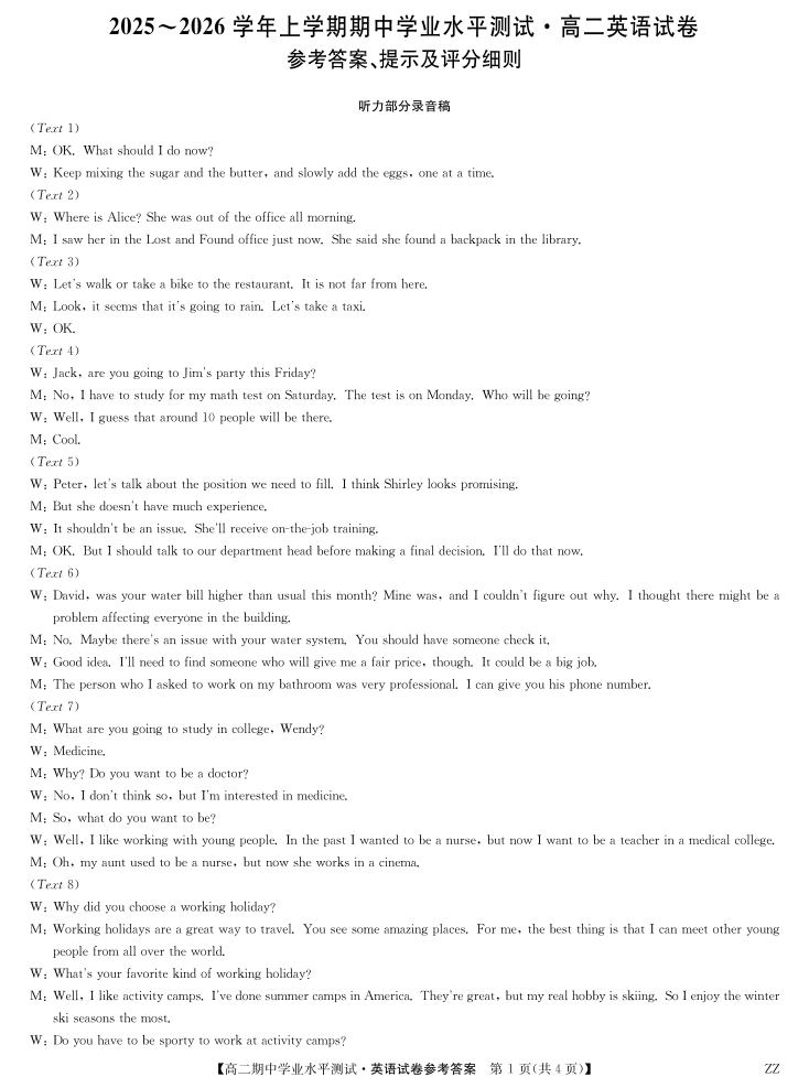 高二英语答案--河南省郑州市八校联盟2025-2026学年高二上学期11月期中考试