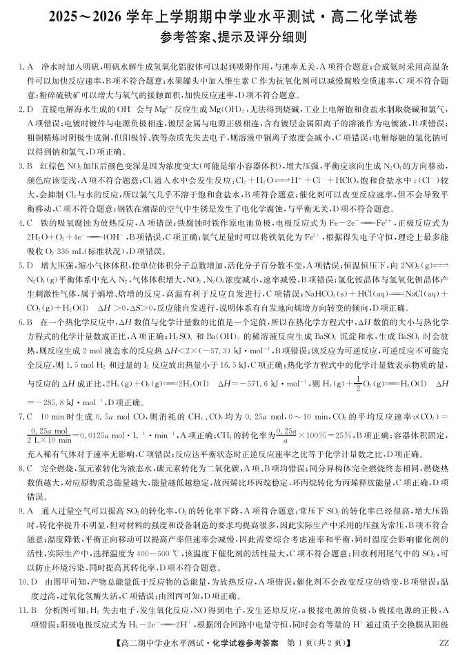 高二化学答案--河南省郑州市八校联盟2025-2026学年高二上学期11月期中考试
