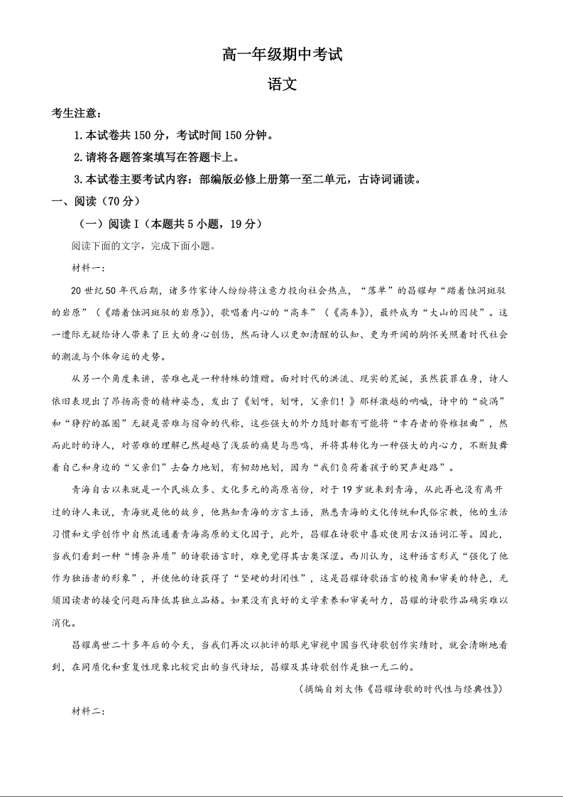 高一语文(解析版)--湖南省三新联盟联考2025-2026学年高一上学期11月期中考试