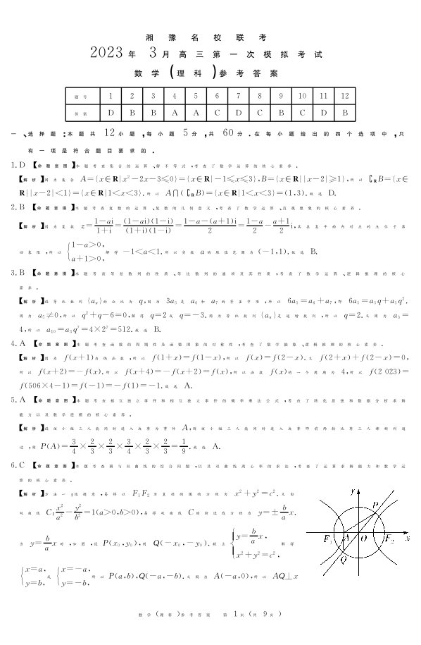 高三理数答案--湘豫名校联考高三3月第一次模拟考试3.1-2