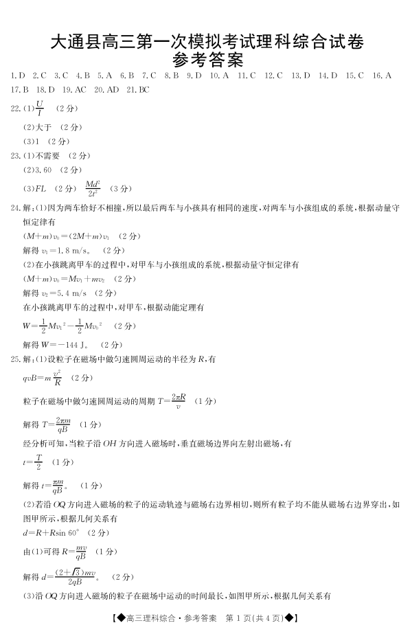 高三理综答案--青海省西宁市大通回族土族自治县2023届高三一模