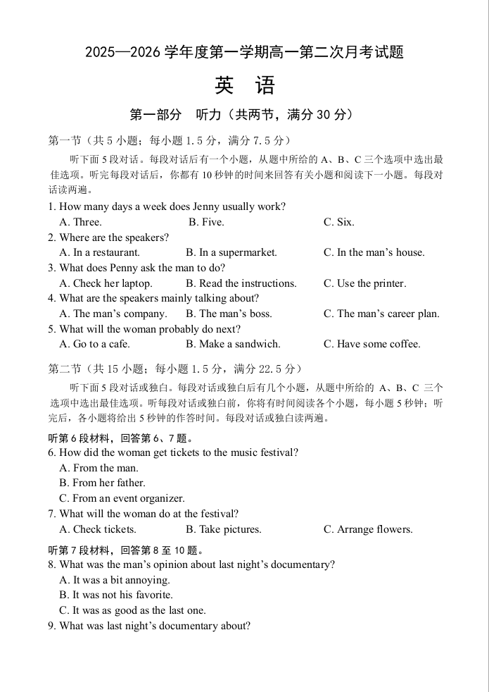 高一英语--海南省文昌中学2025-2026学年高一上学期第二次月考
