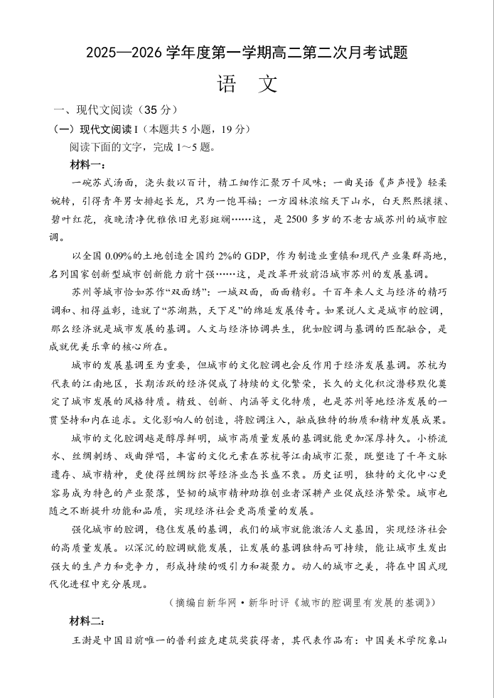 高二语文--海南省文昌中学2025-2026学年高二上学期第二次月考