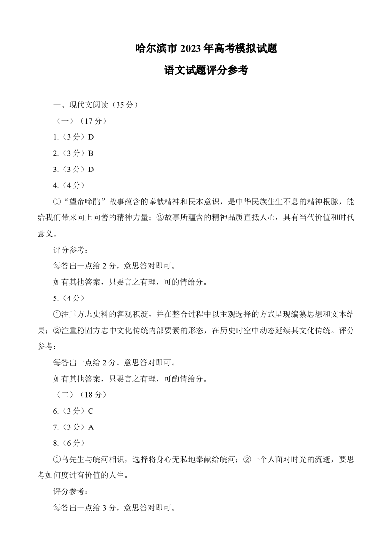 高三语文答案--东北三省四市教研联合体2023届高考模拟考试(二)