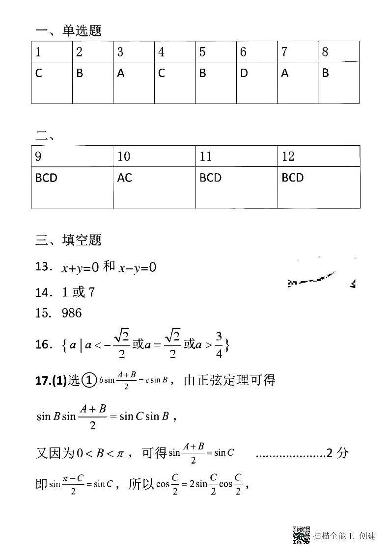 高三数学答案--东北三省四市教研联合体2023届高考模拟考试(二)