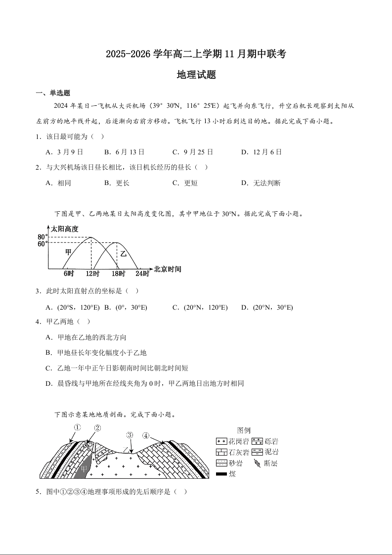 高二地理+答案--江苏省淮安市高中校协作体2025-2026学年高二上学期期中联考