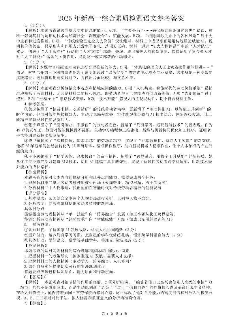 高一语文答案--安徽省江南十校2025-2026学年高一上学期12月联考
