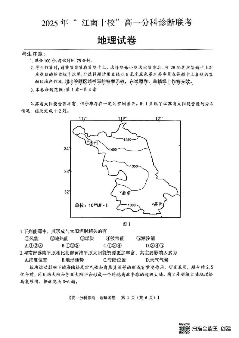 高一地理--安徽省江南十校2025-2026学年高一上学期12月联考