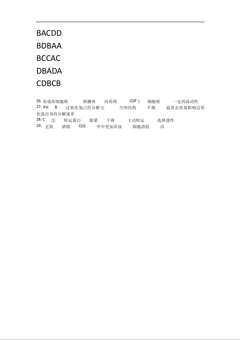 高一生物答案--浙江省诸暨中学暨阳分校2025-2026学年高一上学期期中考试