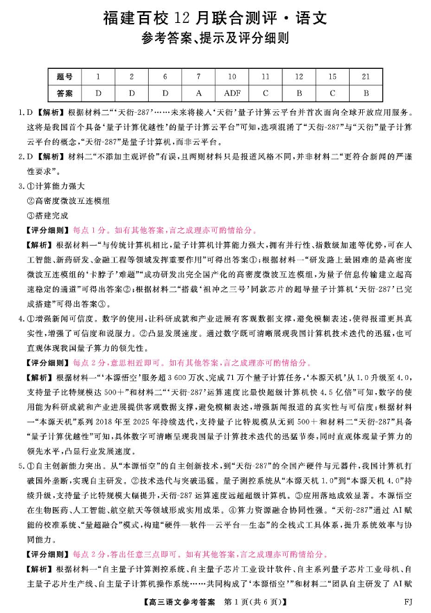 高三语文答案--福建省百校2026届高三上学期12月联合测评