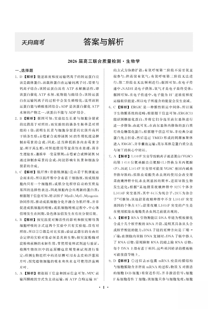 高三生物答案--陕晋宁青地区2026届天舟高考高三12月联合质量检测