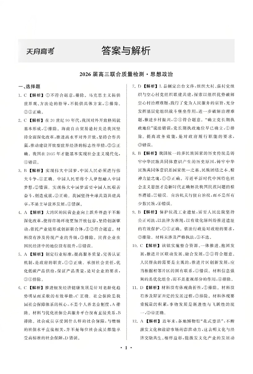 高三政治答案--陕晋宁青地区2026届天舟高考高三12月联合质量检测