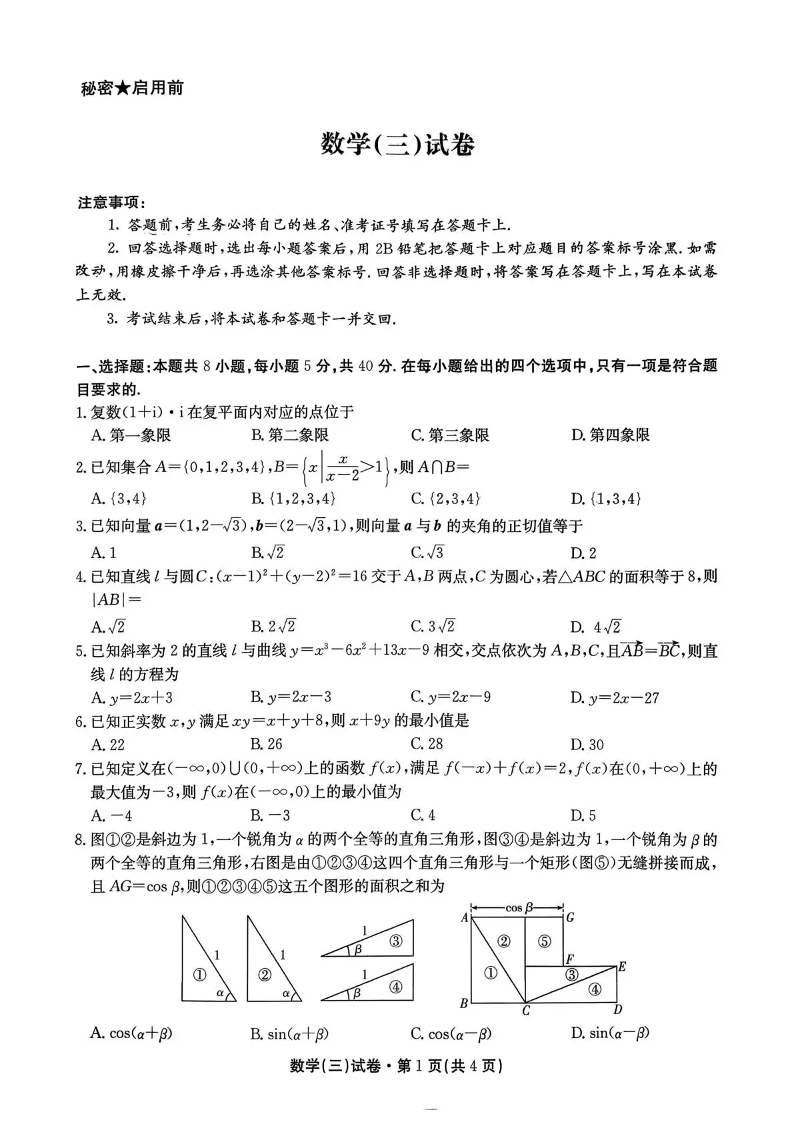 高三数学--云南省名校联盟2026届高三上学期第三次联考
