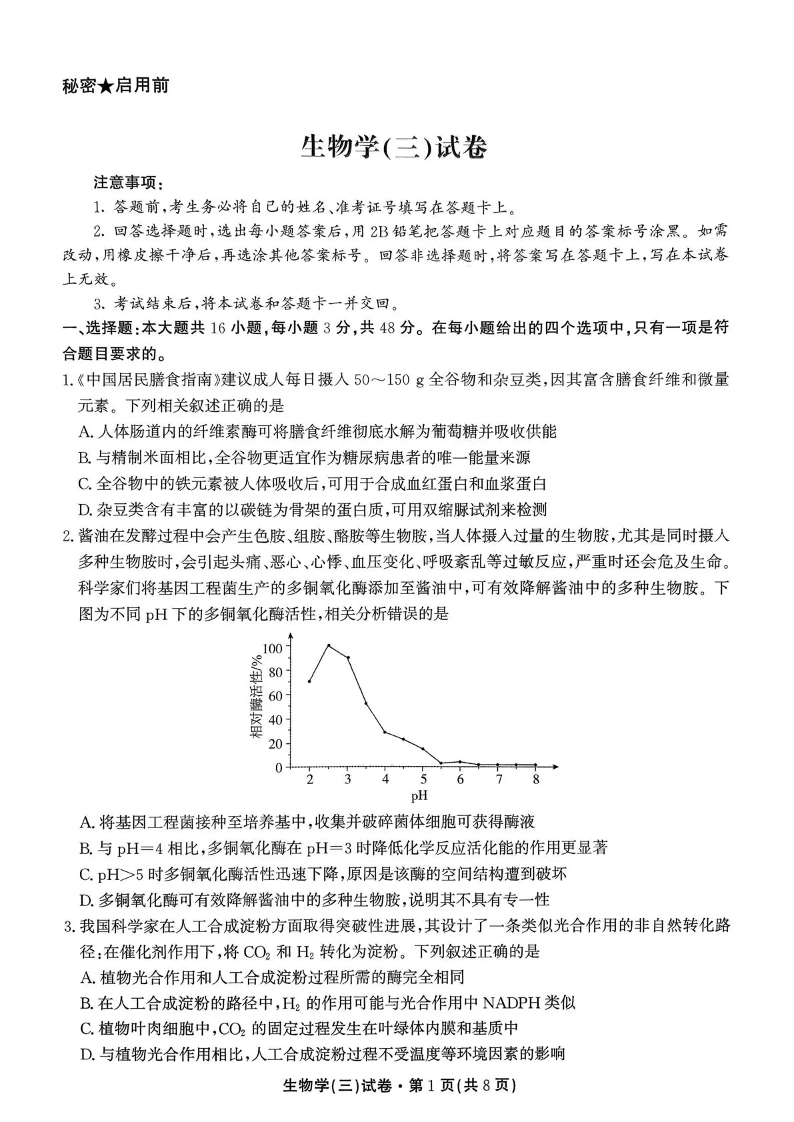 高三生物--云南省名校联盟2026届高三上学期第三次联考