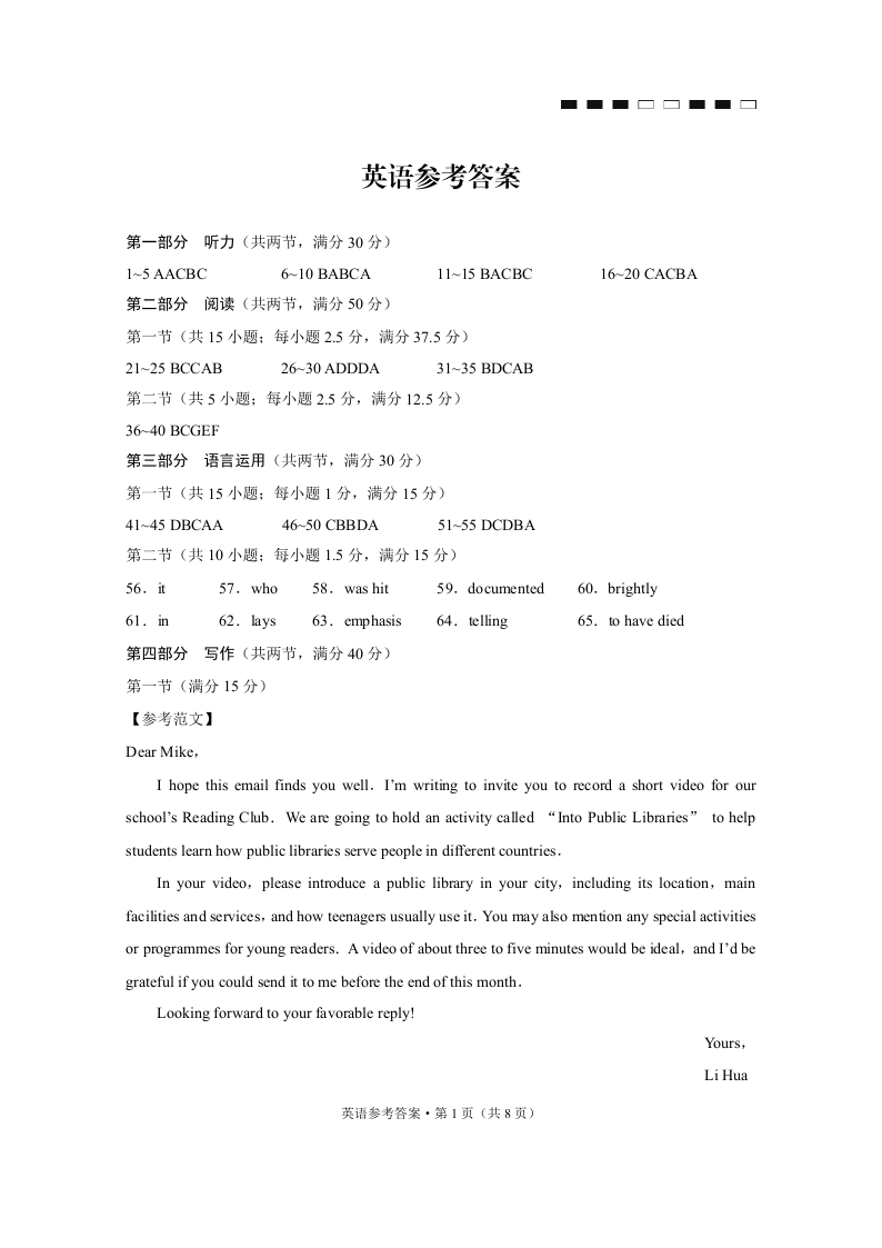 高三英语答案--重庆市巴蜀中学2026届高考适应性月考卷(五)