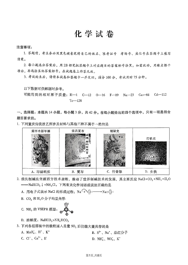 高三化学--重庆市巴蜀中学2026届高考适应性月考卷(五)