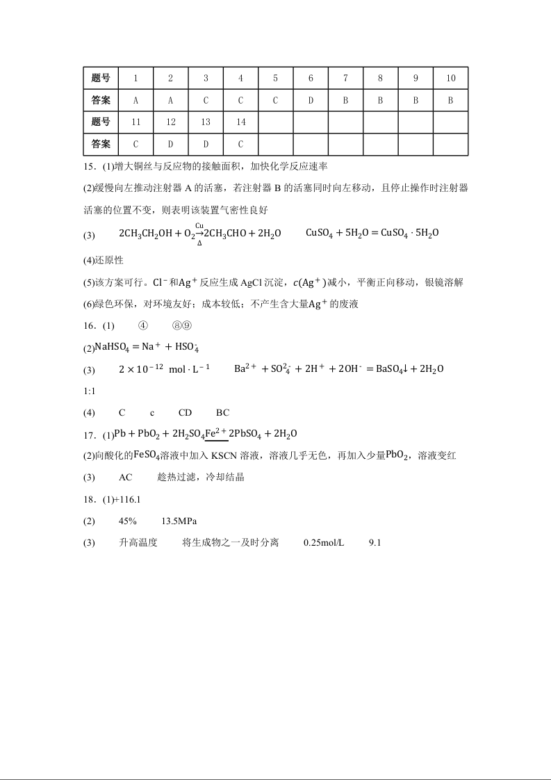 高二化学答案--宁夏回族自治区石嘴山市第一中学2025-2026学年高二上学期12月月考