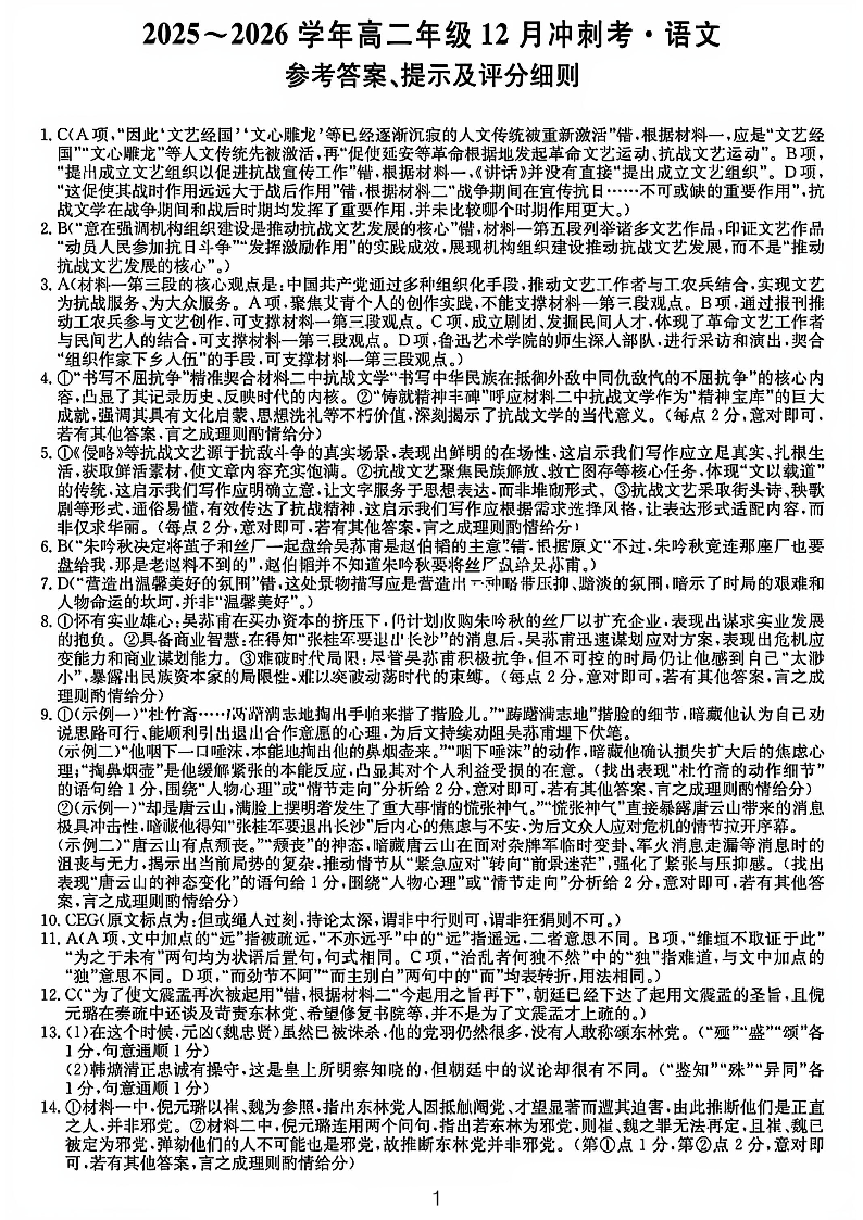 高二语文答案--山西省三晋卓越联盟2025-2026学年高二12月冲刺卷