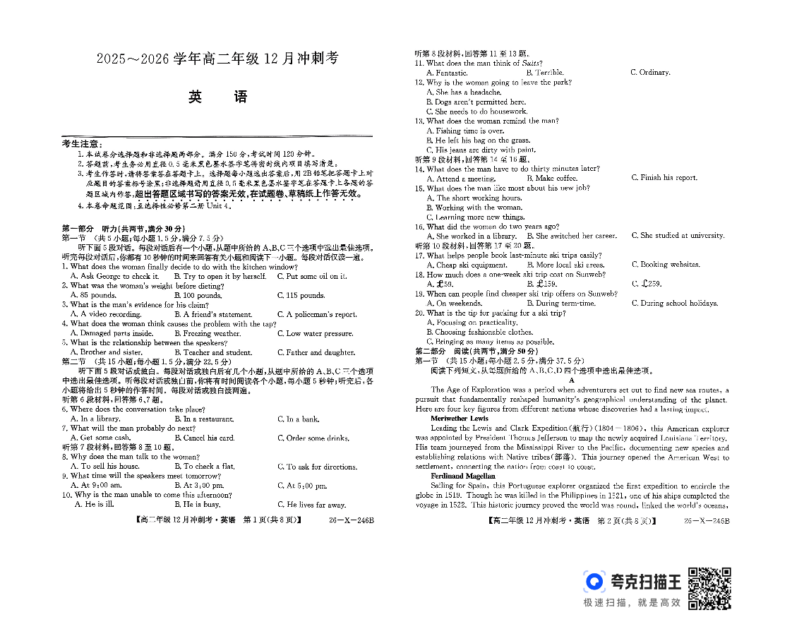 高二英语--山西省三晋卓越联盟2025-2026学年高二12月冲刺卷