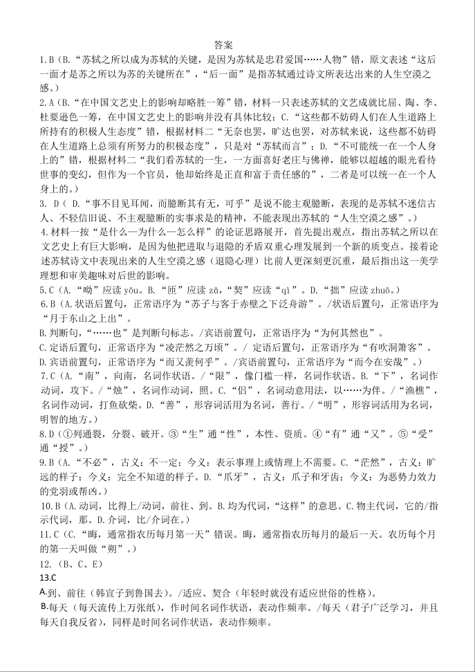 高一语文答案--黑龙江省齐齐哈尔市第八中学校2025-2026学年高一上学期12月月考