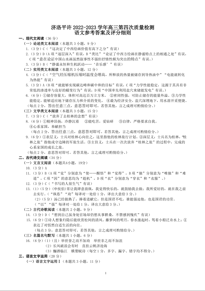 高三语文答案----河南省济洛平许2023届高三第四次质量检测