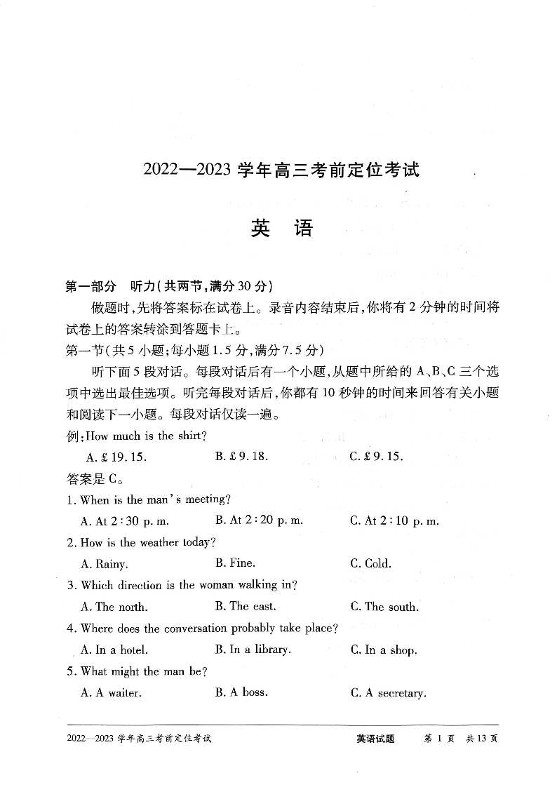 高三英语--河南省许平汝名校2023届高三考前定位考试