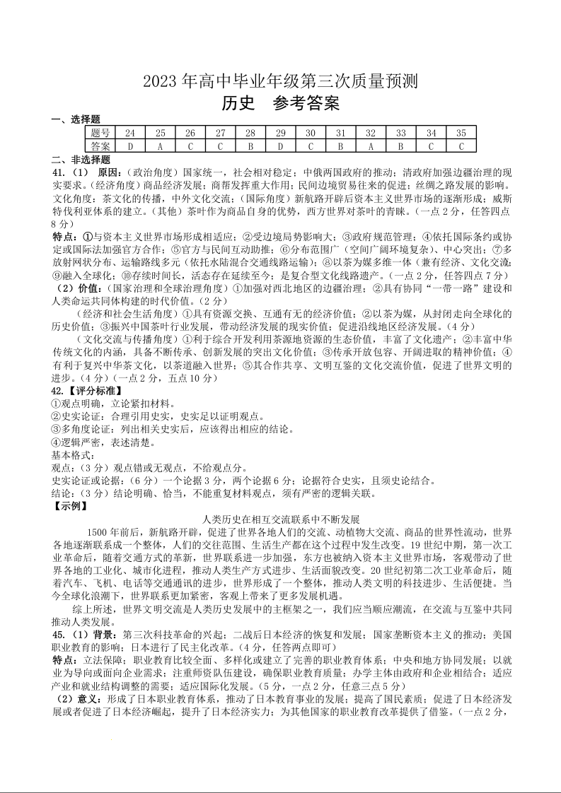 高三历史答案--河南省郑州市2023届高三第三次质量预测