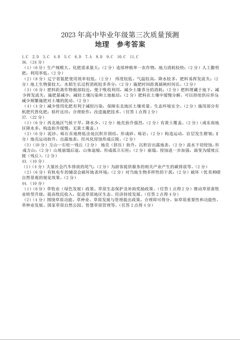 高三地理答案--河南省郑州市2023届高三第三次质量预测