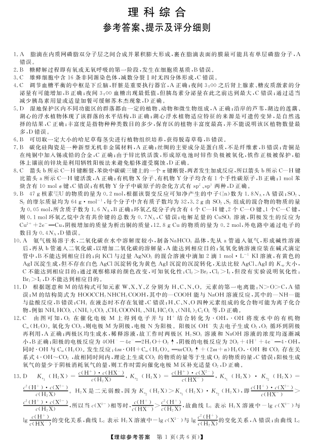 高三理综答案--黑龙江齐齐哈尔市2023届高三三模