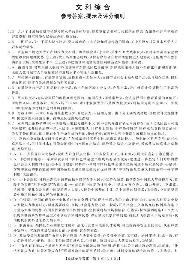 高三文综答案--黑龙江齐齐哈尔市2023届高三三模