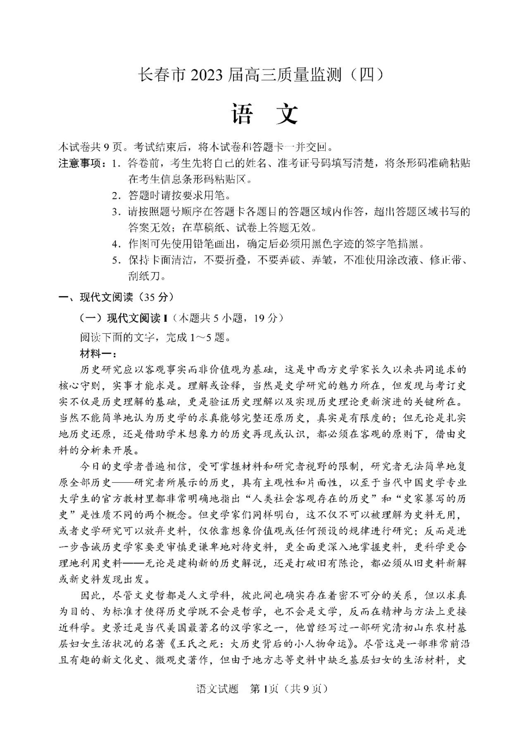 高三语文+答案--吉林省长春市2023届高三质量监测(四)