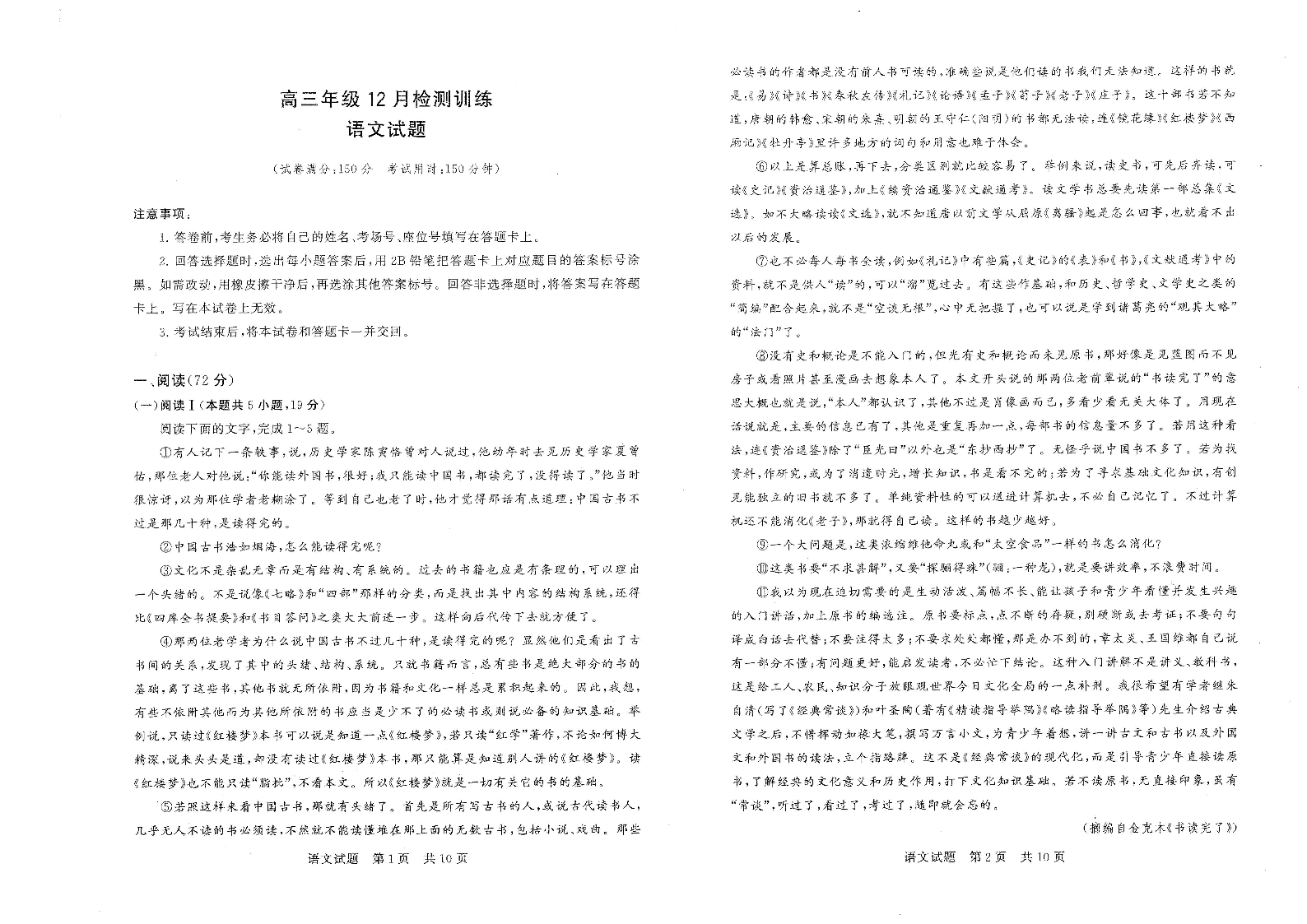 高三语文--湖北省2026届高三年级12月检测训练(T8联考)