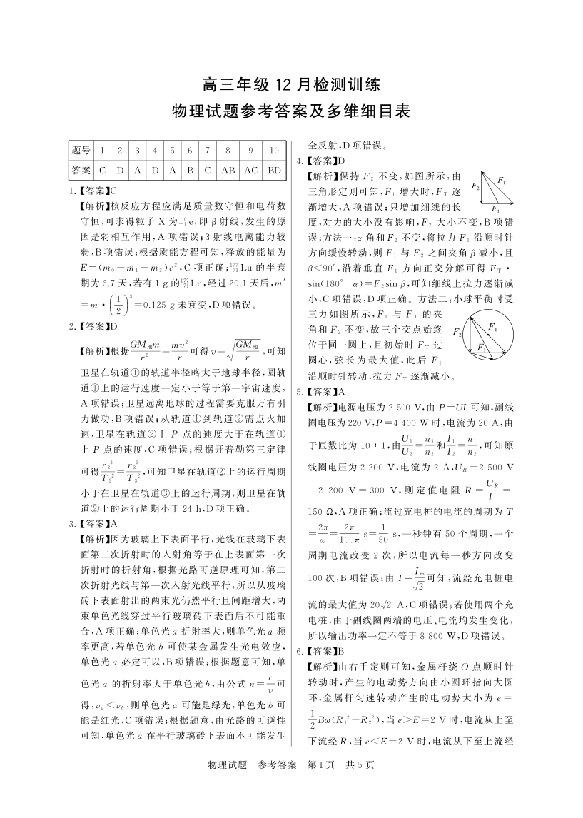 高三物理答案--湖北省2026届高三年级12月检测训练(T8联考)