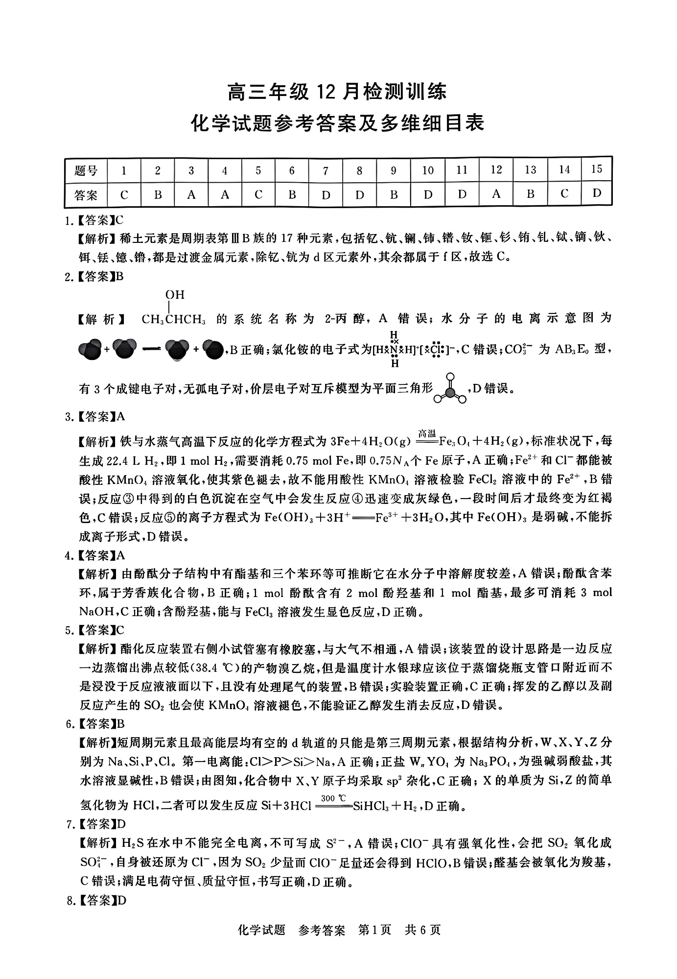 高三化学答案--湖北省2026届高三年级12月检测训练(T8联考)
