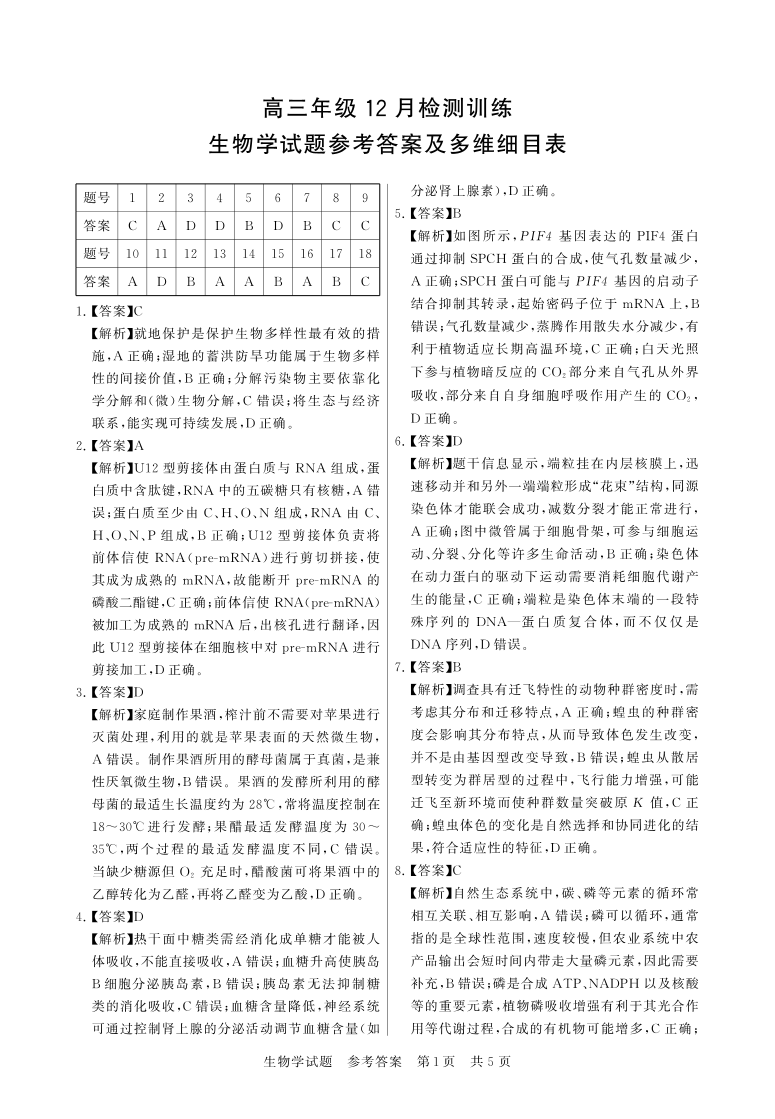 高三生物答案--湖北省2026届高三年级12月检测训练(T8联考)