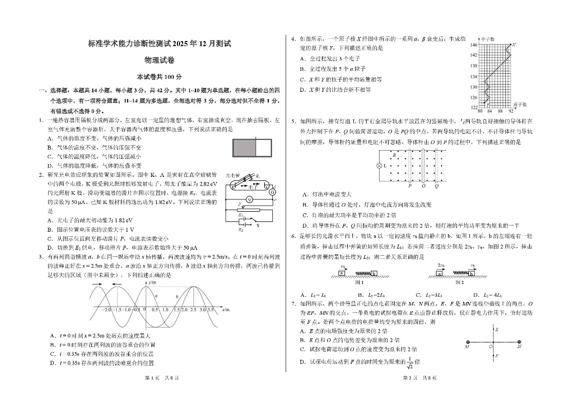 高三物理+答案--中学生标准学术能力(TDA)诊断性测试2026届高三上学期12月测试