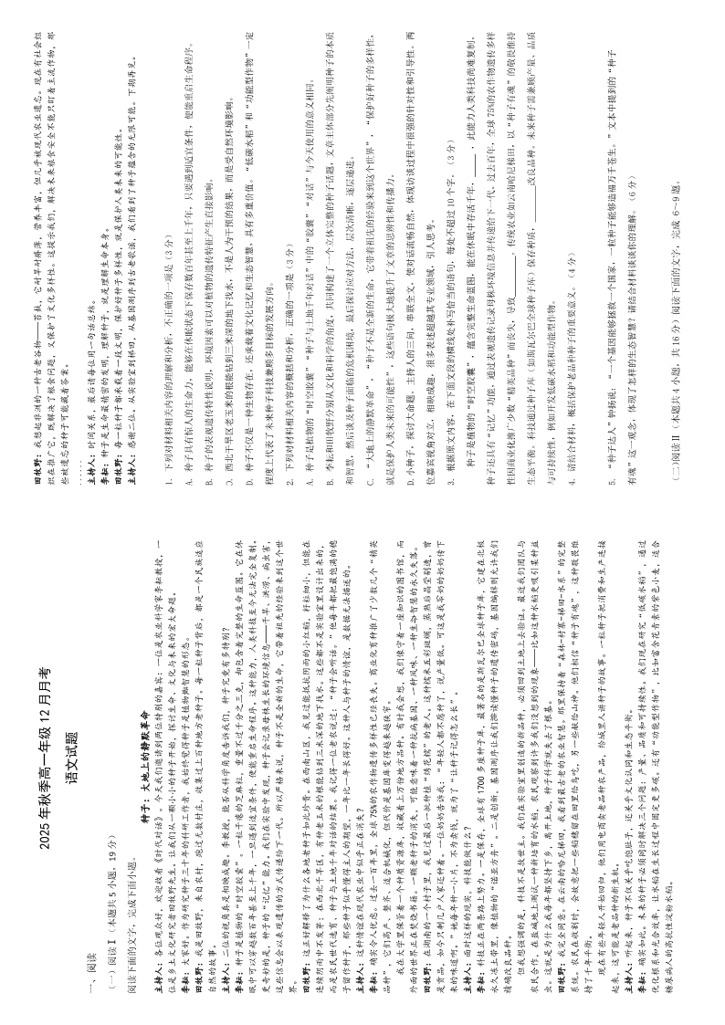 高一语文--湖北省重点高中智学联盟2025-2026学年高一上学期12月月考