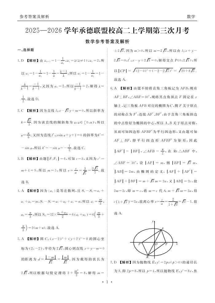 高二数学答案--河北省衡水金卷2025—2026学年承德联盟校高二上学期第三次月考