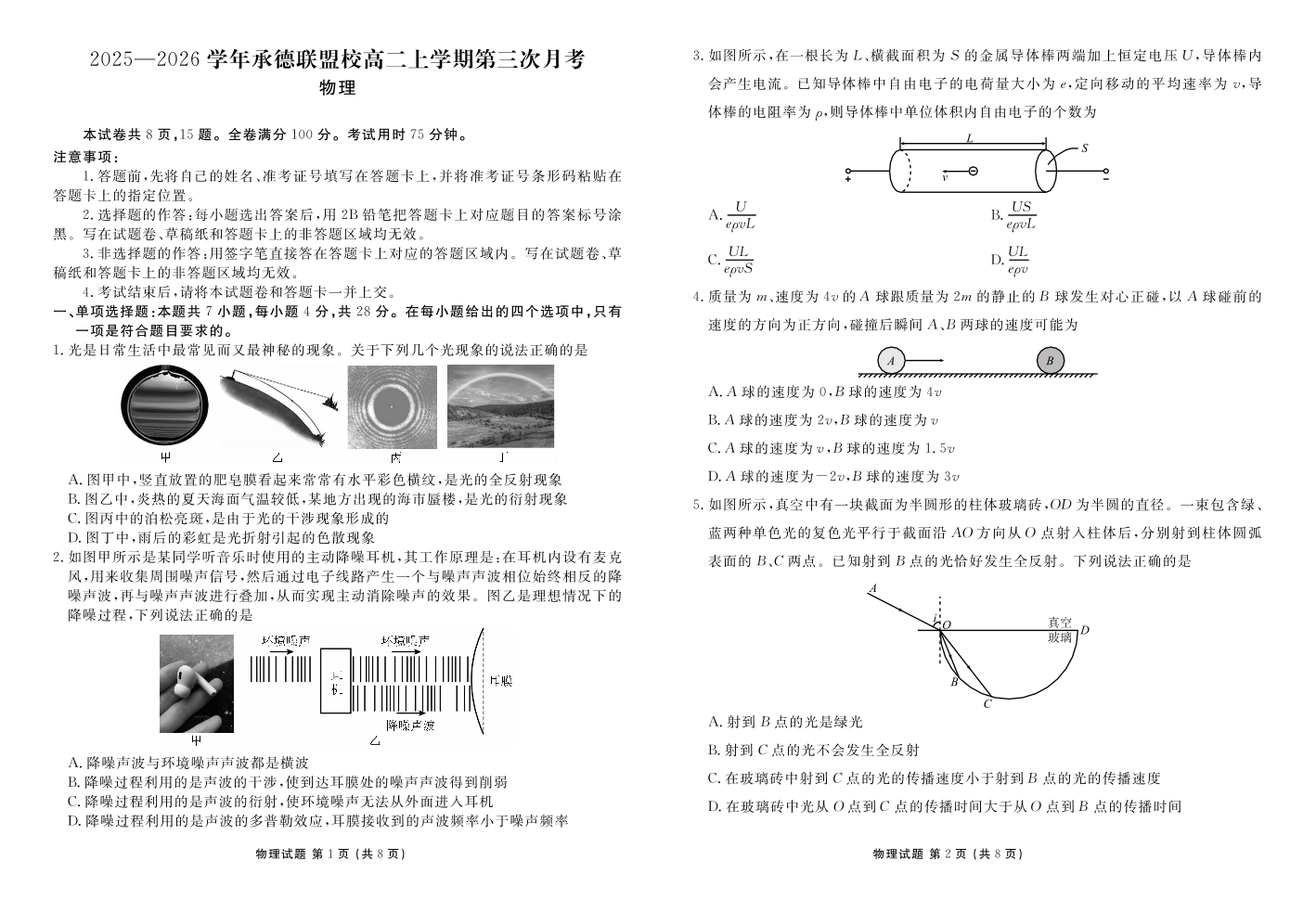 高二物理--河北省衡水金卷2025—2026学年承德联盟校高二上学期第三次月考