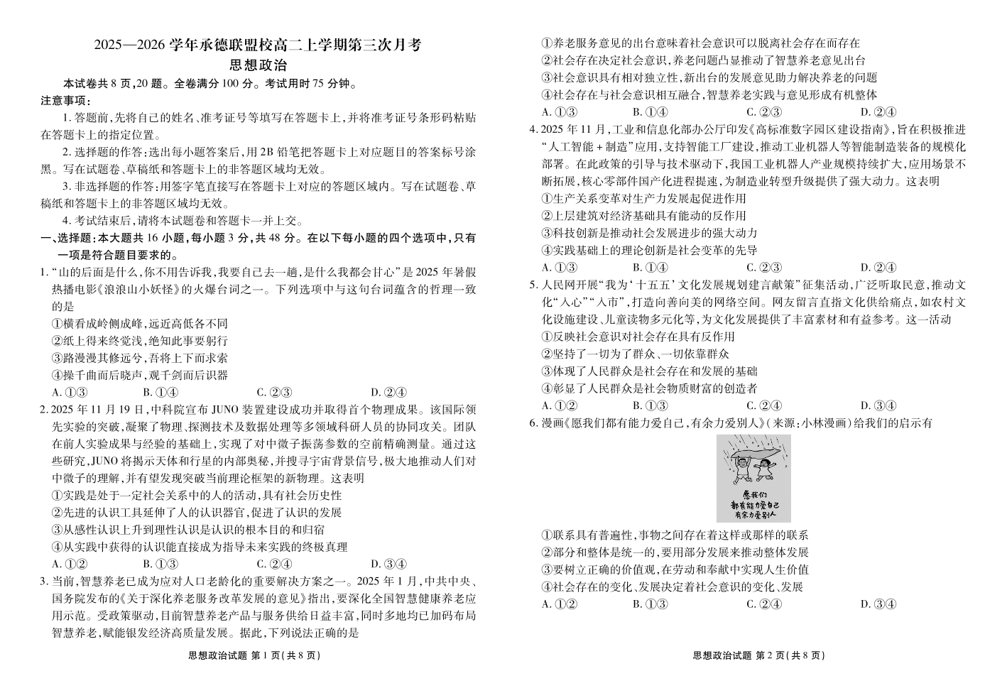 高二政治--河北省衡水金卷2025—2026学年承德联盟校高二上学期第三次月考