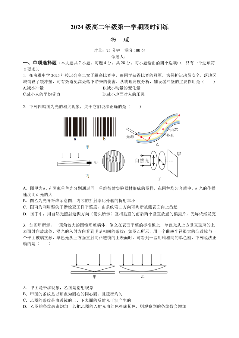 高二物理--湖南省长沙市南雅、雅礼实验中学等五校联考2025-2026学年高二上学期12月限时训练